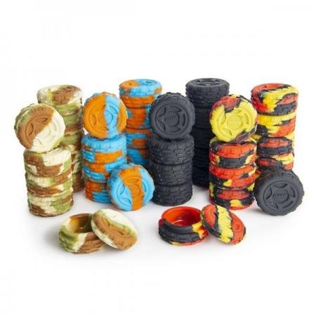 THE HOT BOX SILICONE CONCENTRATE CONTAINER IS A BRAND NEW WATER-RESISTANT AND NON-STICK STORAGE SOLUTION FOR ALL FORMS OF WAX. PERFECT FOR MOTOR ENTHUSIASTS OF ALL KINDS, IT RESEMBLES A TIRE WITH HUBCAPS ON BOTH FLAT SIDES AND TIRE TRACKS AROUND THE EDGES. THE HOT BOX DOES A GREAT JOB OF KEEPING CONCENTRATES SAFE AND SECURE UNTIL IT’S TIME TO TAKE A DAB.ASSORTED COLORS